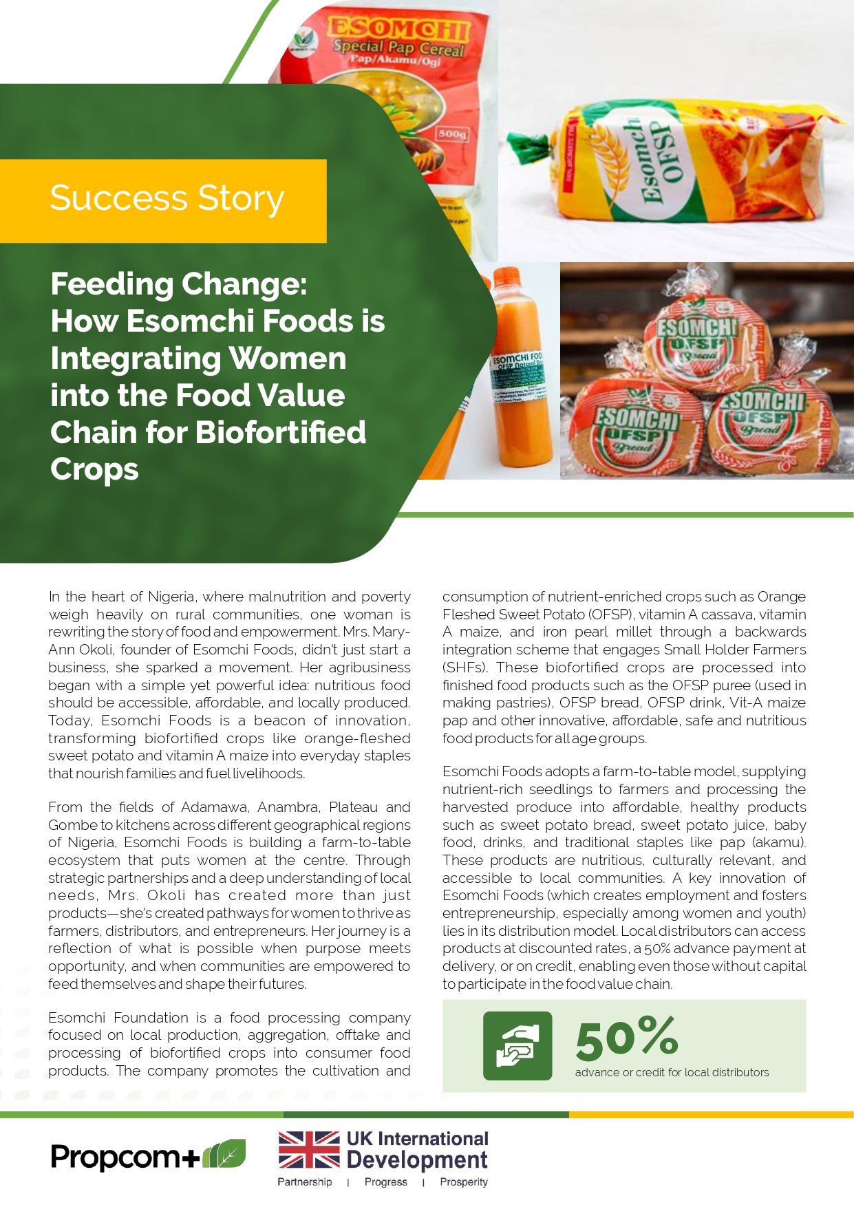 Today, Esomchi Foods is a beacon of innovation, transforming biofortified crops like orange-fleshed sweet potato and vitamin A maize into everyday staples that nourish families and fuel livelihoods.